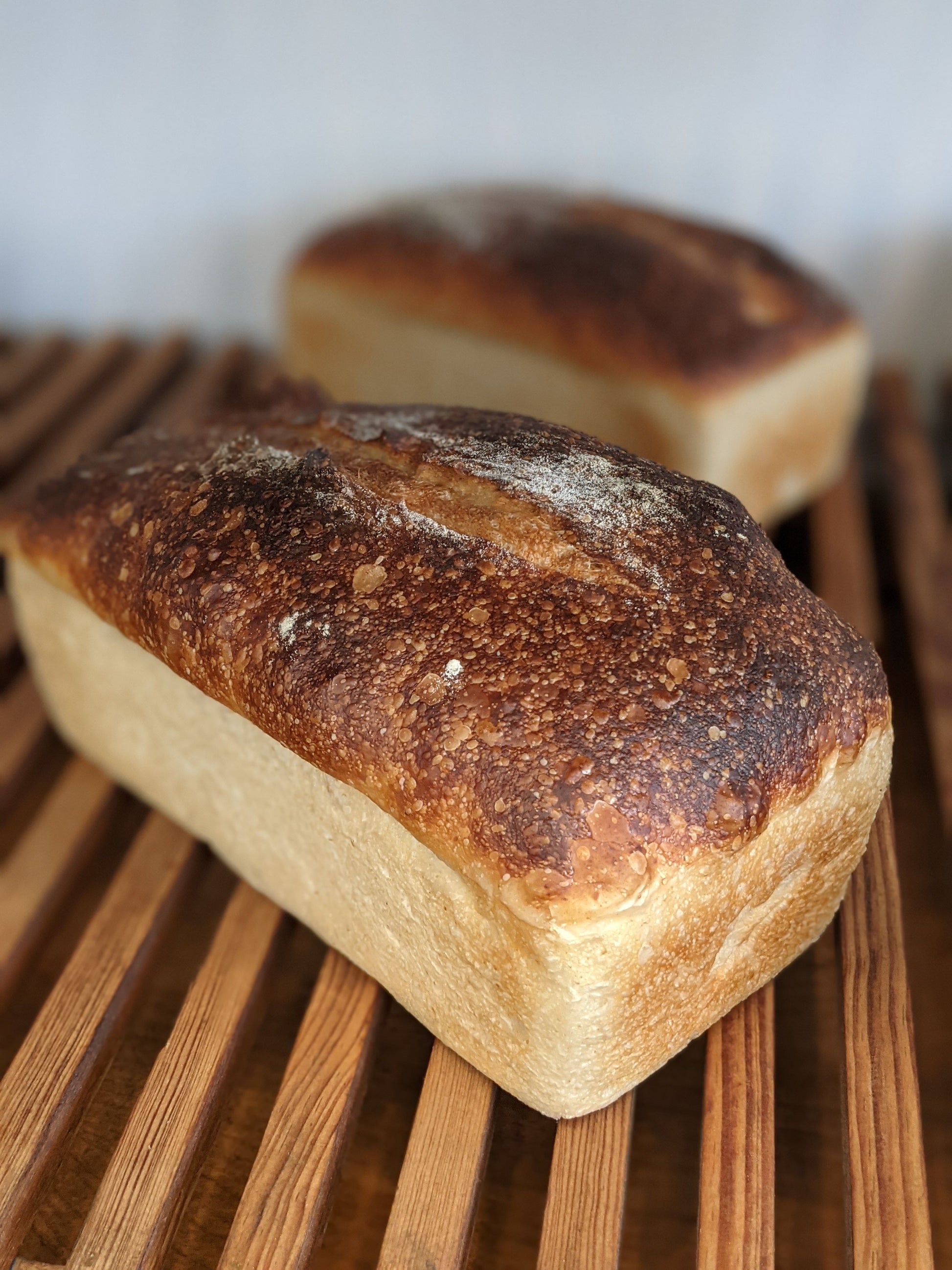 - French Pan Loaf: Our French dough baked in bread pans to produce an even loaf perfect for sandwiches. Thin slicing option available after 12pm.